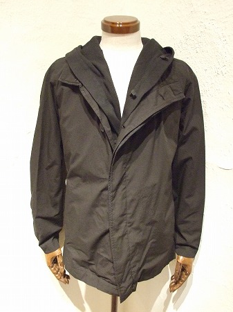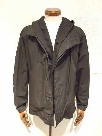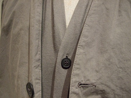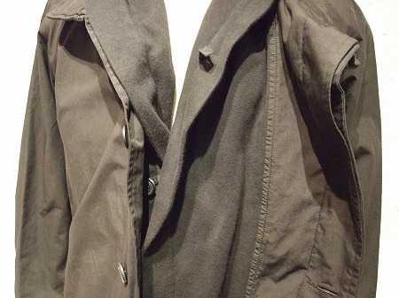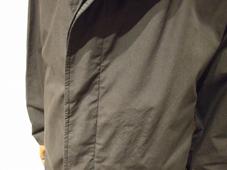 一番目にご紹介したブルゾン同様にボタンの留め方で表情がかなり変わるのはもちろんの事、ブラックとグレーカーキで素材構成が異なりますので、同型とは思えないほど印象が違いますよ!!