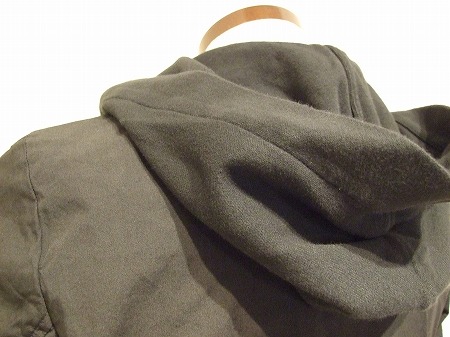 目の詰まったコットンをベースにフードと前身頃の中がジャージ素材に切り替しが入っております。