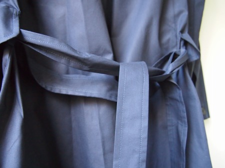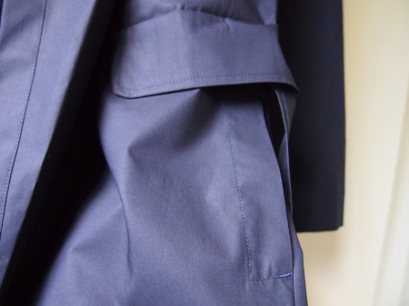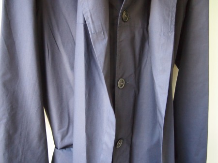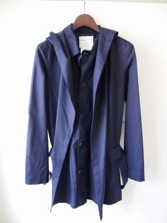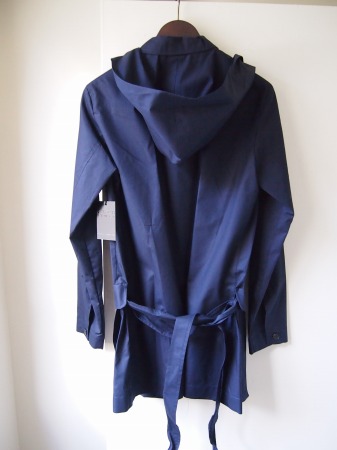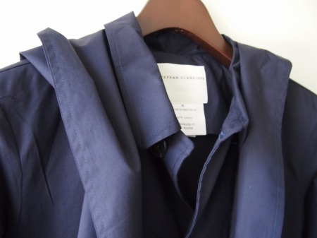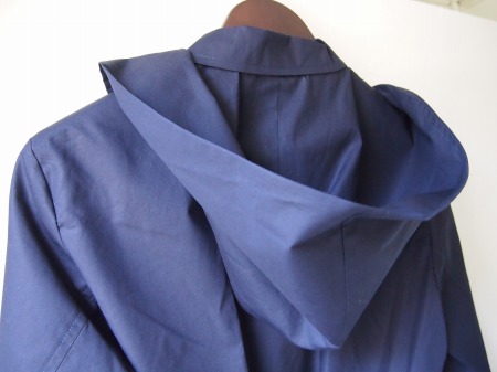 非常に目の細かく柔らかなコットンポプリン生地(シャツの様な薄い生地感)で構成されたタイトなフード付スプリングコート。前身頃部分を同色・同生地でレイヤードスタイルにする事で意外とサッパリした感じになります。暖かくなってきたら袖を捲り上げてシャツ感覚で着るのも粋です。
