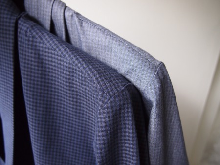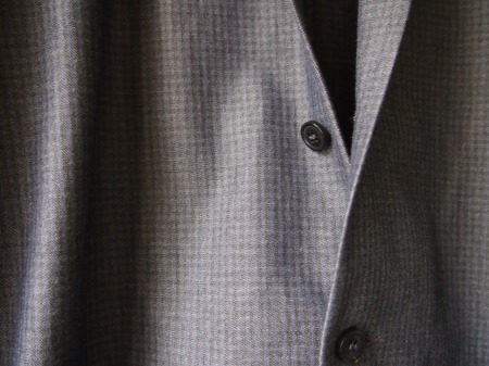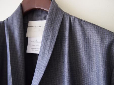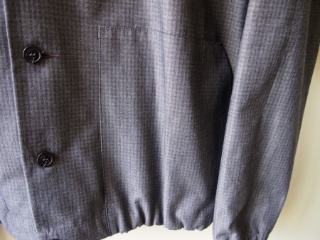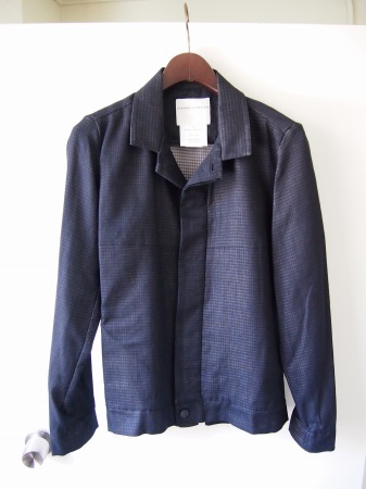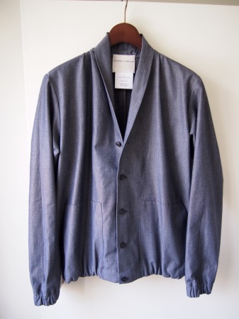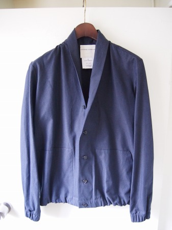 完全に密着したコットンの2枚生地で構成されたブルゾンタイプ。ステファンらしいコンパクトなシルエットも然ることながら、やはり千鳥柄にブラックカラーを重ねて見せるアイデアが非常に印象的です。今までに見た事のない様な生地ですが、一見は非常にシンプルなのでコーディネート力も抜群です。