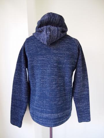 特徴:コットン素材のミドルゲージ編フーデッドブルゾン。