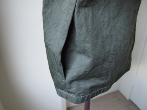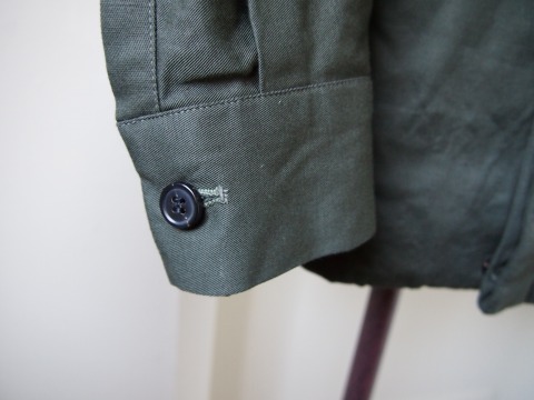 カーキタイプより少し薄めのツルっとしたコットン素材を使っているので、より春らしく涼しげな感じとなります。生地・色目で言うとカーキはミリタリー、グレーベージュはワークという感じです。