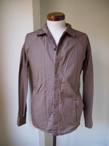 従来の同ブランドのシャツよりは着丈を少し短めにコンパクトな作りとなっております。比翼仕立てや珍しく付いているポケットも良いポイントです。