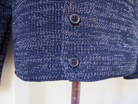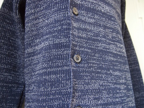 前ボタンを開けてラフに着てもサマになる細めのシルエットと、ランダムに混毛されたカラーバランスが魅力的です。コットン素材なので夏前まで着て頂けるタイプです。