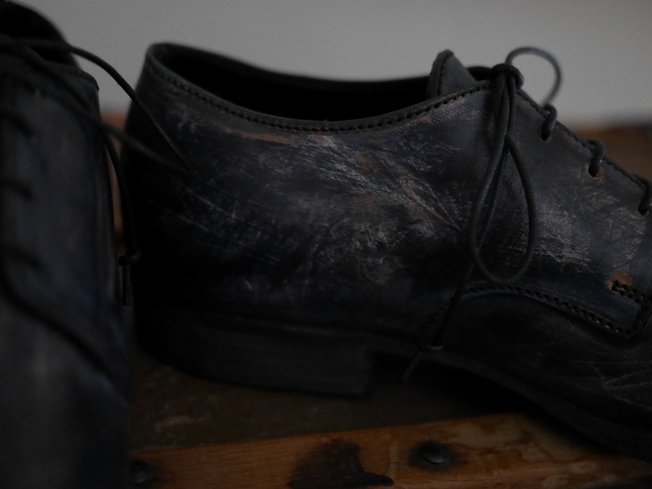 今回は入荷したばかりの 『 MUNOZ VRANDECIC 』 より、当ショップ別注素材 『Black Scratch Leather』 を使用したスペシャルアイテムをご紹介致します。