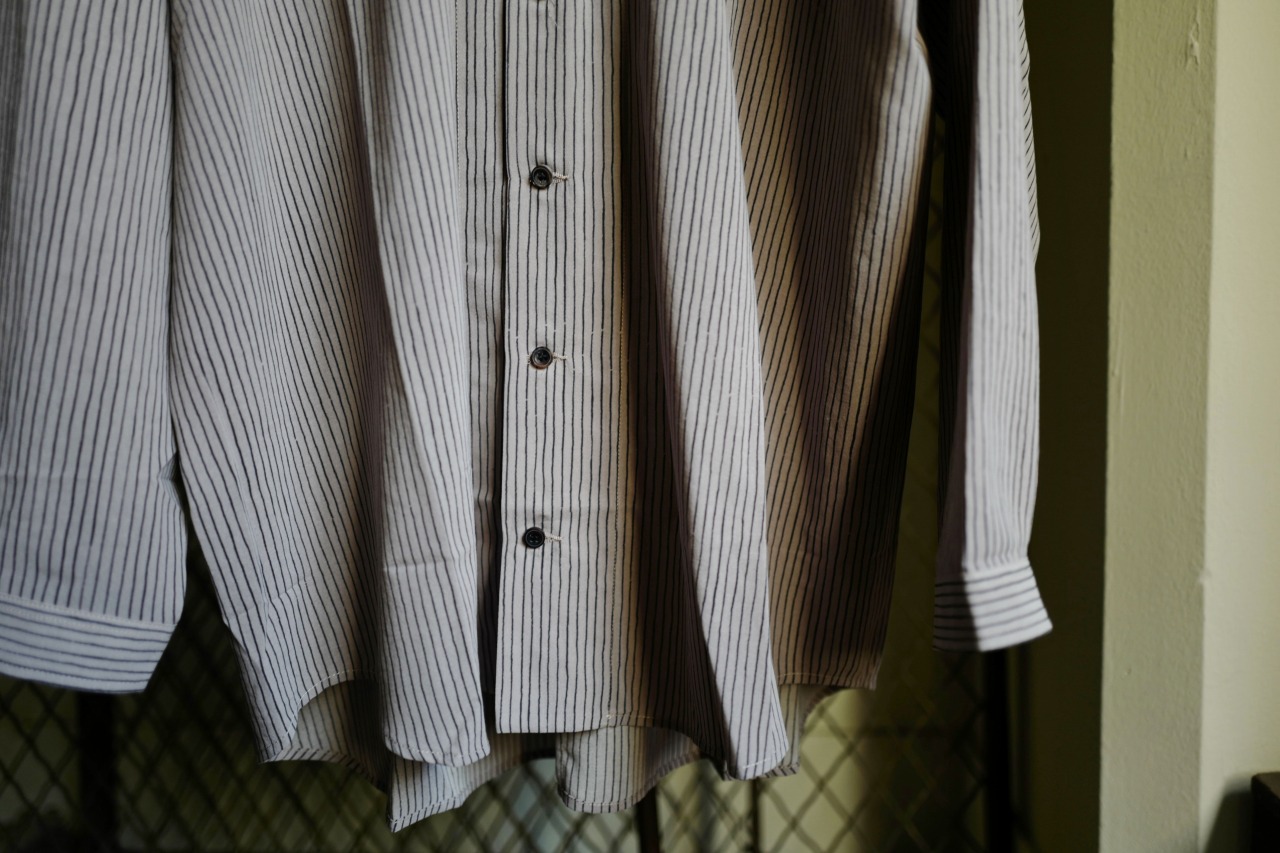 同ブランド特有の生地の表情に加え絶妙なリラックス感あるシルエットが今までの当店にはない新鮮さを感じさせてくれると思いますので是非ご覧下さい。