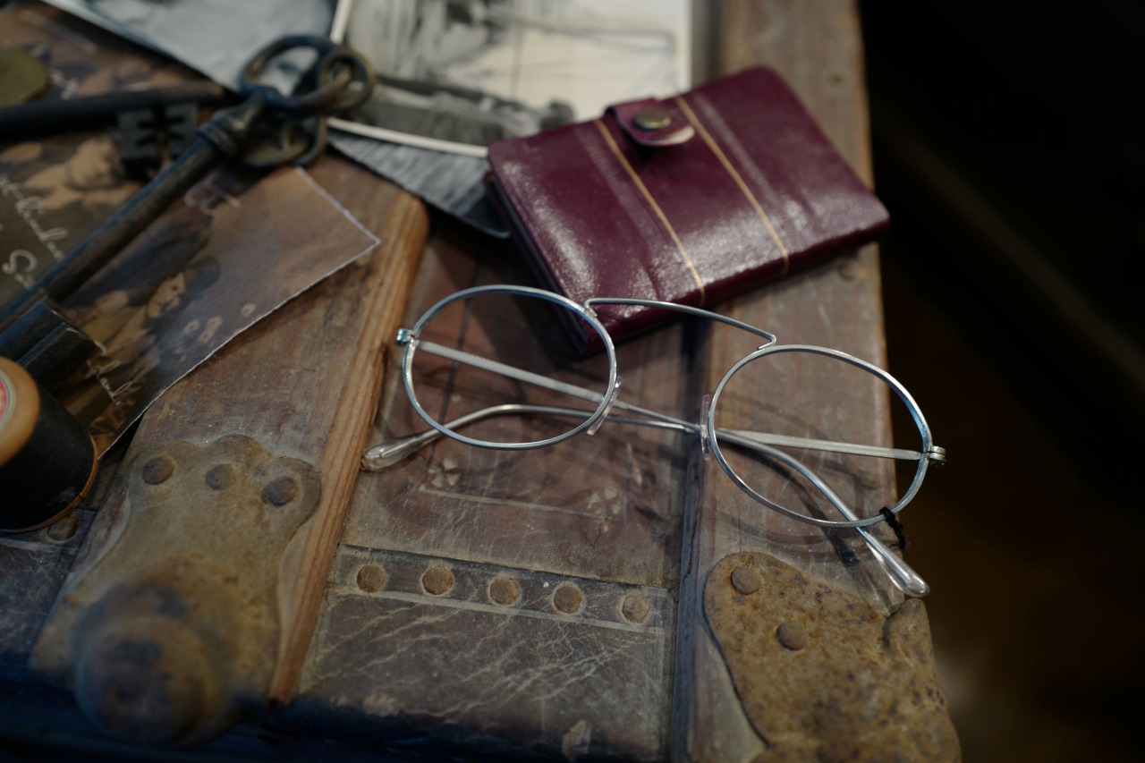 一見するとデザインの主張がありますが、フレーム自体の細さも相まって掛けると意外に顔馴染みが良く、程よいヴィンテージ感が表現できるのもメタルフレームの魅力だと思います。